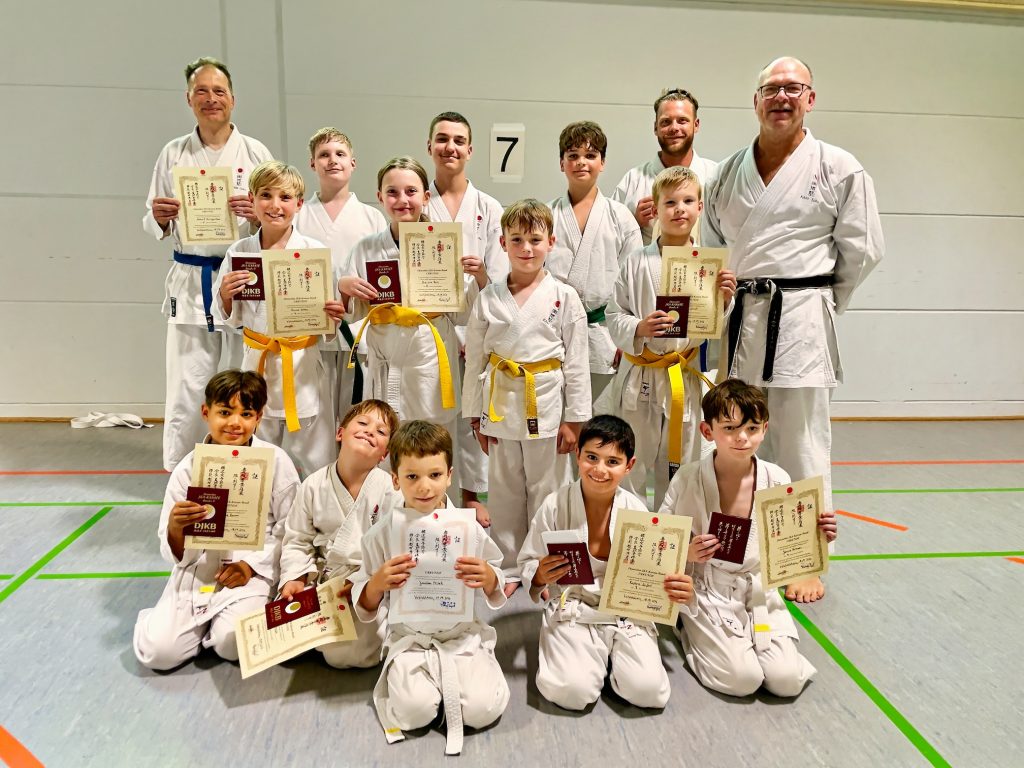 Nach monatelangem, intensivem Training erhielten die kleinen und großen Karateka ihre Prüfungsurkunden für den nächsthöheren Gürtelgrad.