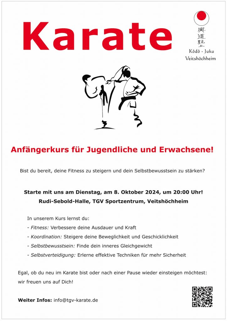 Abt. Karate – Anfängerkurs für Jugendliche und Erwachsenen